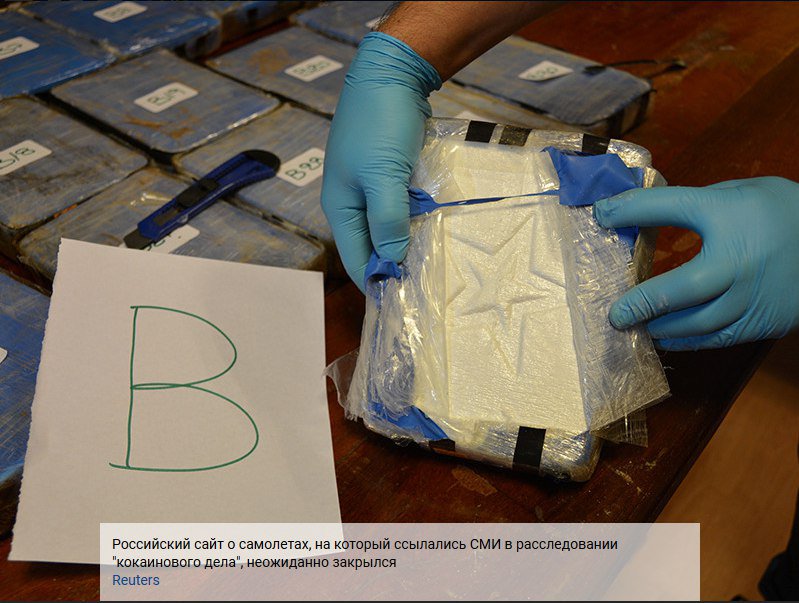 РБК обратил внимание, что на одном из снимков виден бортовой номер самолета - 96023, тот самый, что числится за спецотрядом "Россия". Пресс-секретарь управделами президента РФ Елена Крылова в беседе с ТАСС данные о причастности лайнера к "кокаиновому делу" опровергла: "Информация не соответствует действительности".