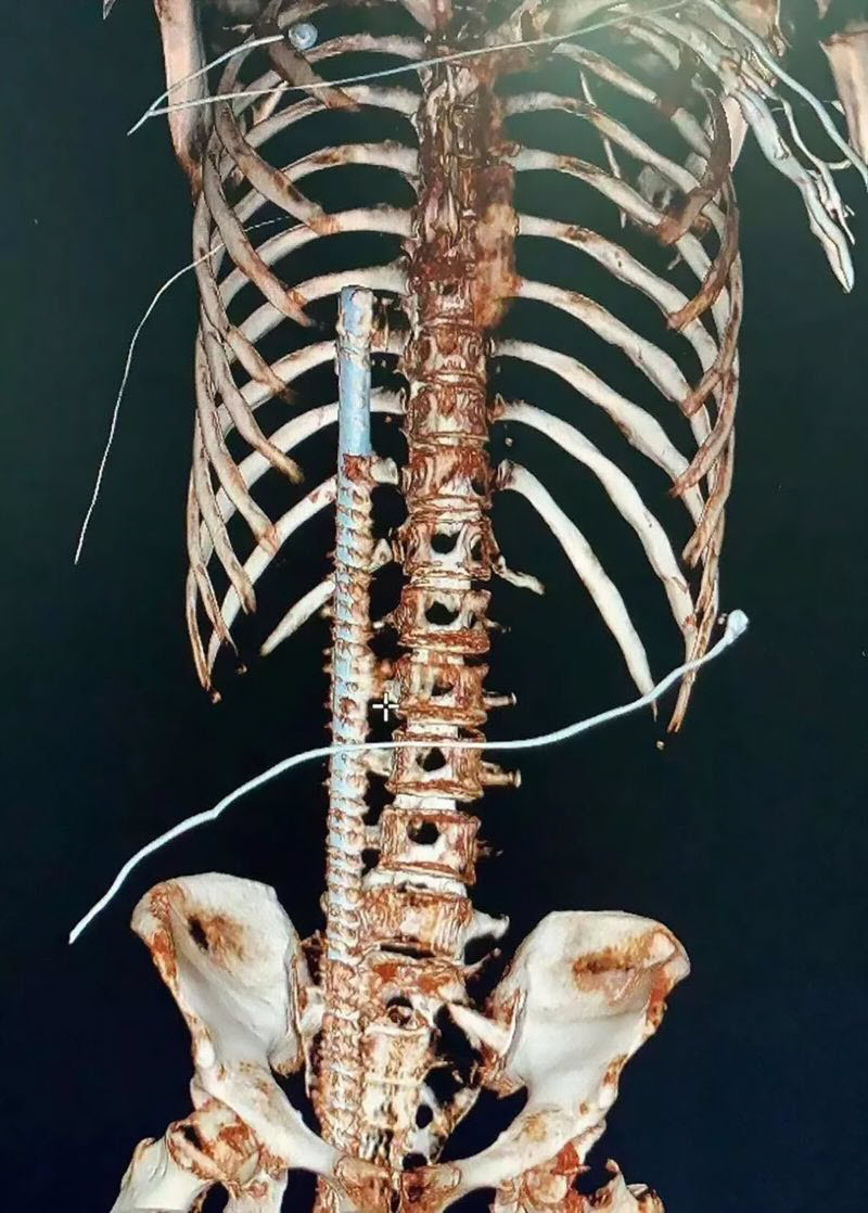 Металлический прут прошил парня почти насквозь, войдя через зад, повредив кишечник, печень, легкие и остановившись в 3 см от сердца.