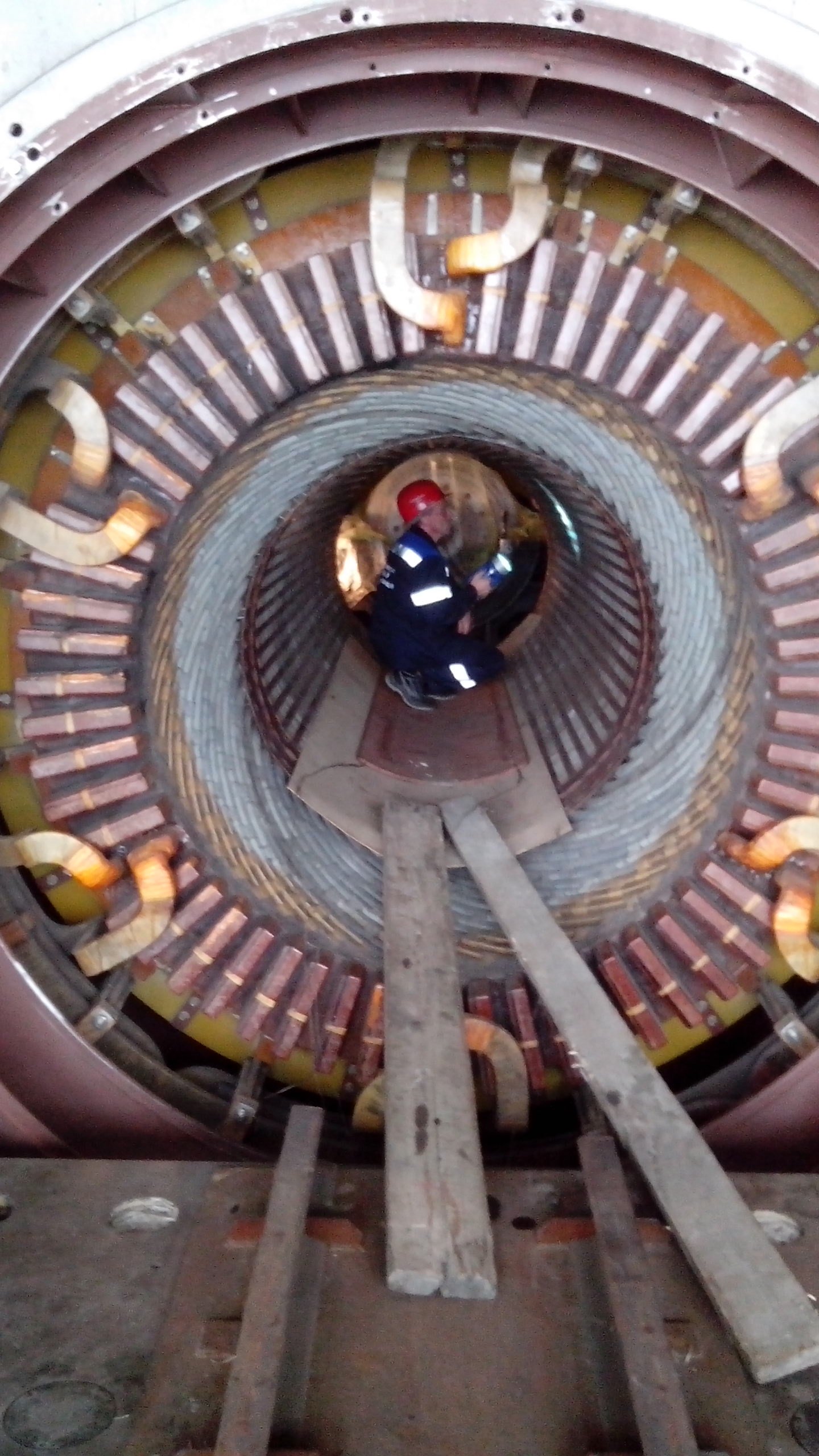 В 2018 году была замена генератора. Подъем осуществляли двумя кранами, так как вес статора был 190 тонн, а грузоподъемность одного крана 100 тонн.