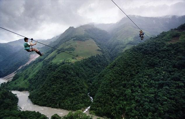7. В отдаленных областях Колумбии дети добираются до школы по канатной дороге.