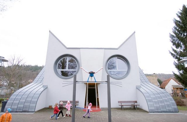 8. Школа в Германии была построена в форме огромной белой кошки вместе с усами и круглыми окнами в форме глаз.