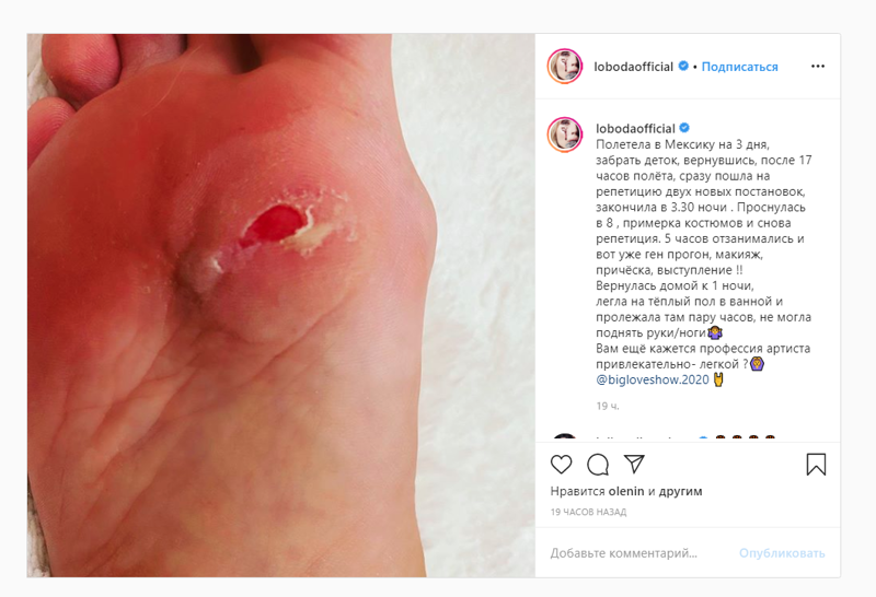Светлана Лобода наверняка ожидала другой реакции, размещая на своей страничке в Инстаграм фото мозолей на стопе.
