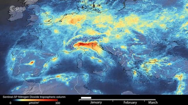 "Новые данные со спутника Copernicus Sentinel-5P свидетельствуют о снижении уровня загрязнения воздуха, в частности, выбросов диоксида азота, над Италией. Это сокращение особенно заметно в северной Италии, что совпадает с введением властями страны мер для предотвращения распространения коронавируса", - отметили в Европейском космическом агентстве.