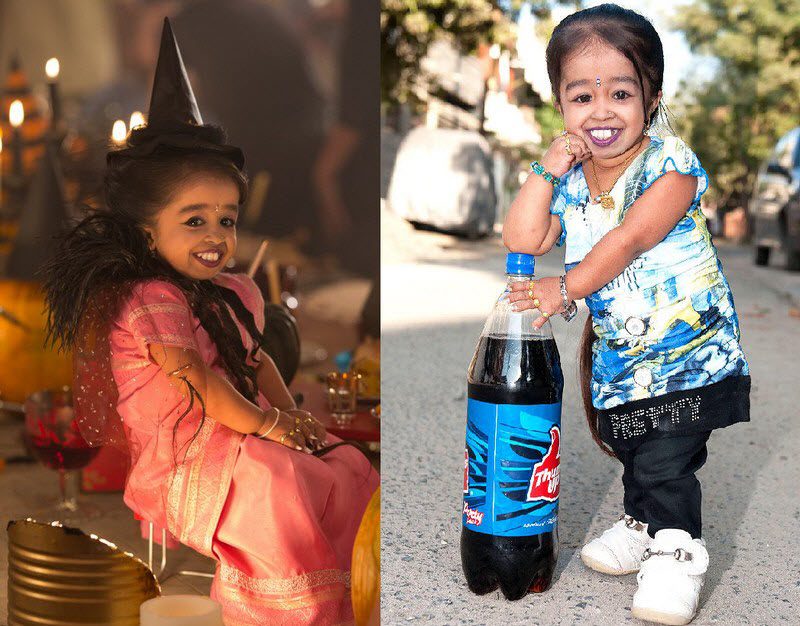 Джиоти Амджи с ростом 62,8 см на 7 см короче, чем предыдущая обладательница титула, американка Бриджит Джордан. Джиоти была удостоена звания, когда она отпраздновала свой 18-й День рождения в 2011 году в городе Нагпур.