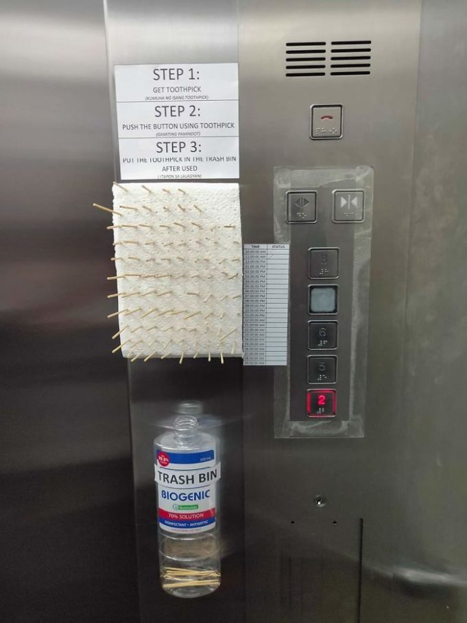 4. Использование зубочисток, чтобы избежать прикосновения к кнопкам лифта.