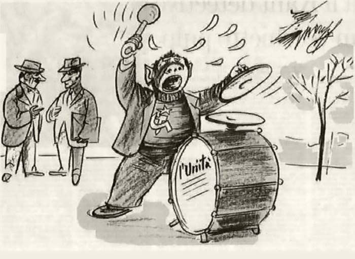 Карикатура Джованнино Гуарески из журнала Candido от 19 апреля 1959 года изображает коммунистов как «Trinariciuto»