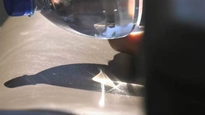 Бутылка с водой может быть опасна, если держать ее у заднего стекла авто, так, чтобы через нее проходил солнечный свет. В этом случае прозрачная тара, наполненная жидкостью, может сыграть роль выпуклой линзы и, соответственно, привести к возгоранию.