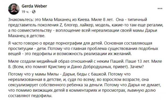 Если коротко, то в Украине дети-блогеры активно крутят взрослые отношения онлайн. Да, ради хайпа, но по-настоящему. Всё бы ничего, но даме 8 лет (модель-блогер 🙈 ), кавалеру 13 лет (тоже блогер). Курирует и подкачивает тему мамаша девочки, которая как бы её личный менеджер. Добро пожаловать под кат!