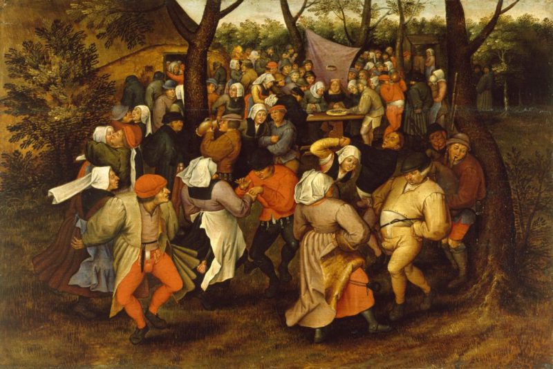 На въезде в деревню королевские посланники встретили группу крестьян, которые старательно топили в реке угря. Разумеется, рыба не собиралась тонуть, но это лишь раззадоривало компанию. Подивившись увиденному, чиновники отправились дальше и перед их глазами возникла еще более безумная картина – толпа селян бесновалась вокруг дерева, обнесенного забором.