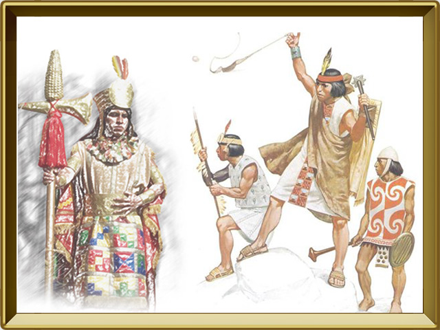 Оружие самого Великого Инки было сделано из золота. Он тоже ходил на войну, и тоже бился маканом с золотым навершием, а во врагов метал из пращи золотые снаряды.