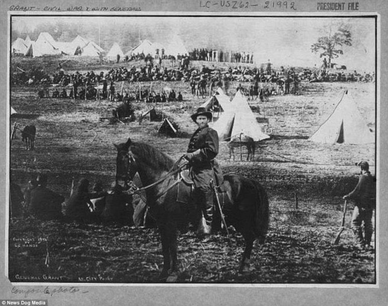 Три в одном: портрет Улисса Гранта. Неизвестный ретушер для поднятия духа солдат сделал из трех фотографий одну политически корректную. С одного снимка взяли голову Улисса, присоединили ее к телу генерал-майора Александра М. Кука и все это поместили на фотографию лагеря с пленными южанами.