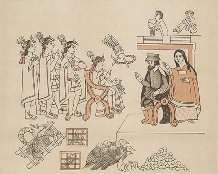 Встреча Кортеса и Монтесумы, Тласкаланское изображение 16-го века.