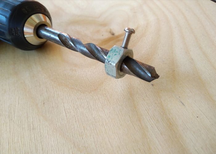 - Гайка подходящая по диаметру сверла. Желательно что бы она плотно заходила в сверло или лучше немного меньшего диаметра, далее расскажу почему!
