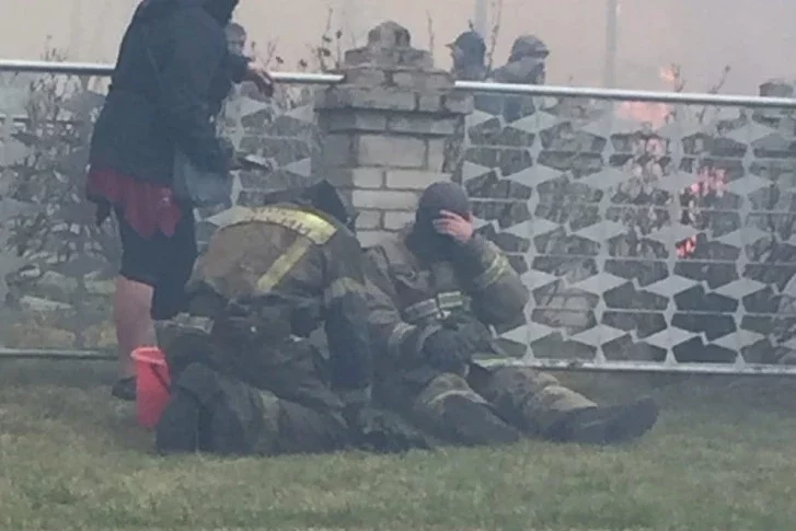 Измотанные пожарные в Уяре (Красноярский край) 7 мая