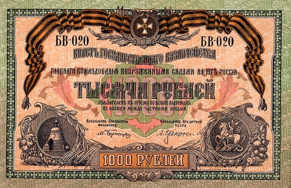Белогвардейское правительство генерала А.И.Деникина в августе 1919 года ввела в обращение денежные купюры, которые за обилие Георгиевских лент на них прозвали так же «ленточками».
