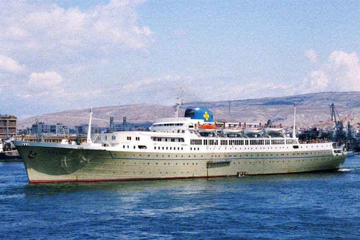153-метровый лайнер MTS Oceanos был построен в 1952 году для компании Messageries Maritimes на французском судостроительном заводе Forges et Chantiers de la Gironde в Бордо. Первые несколько лет он ходил на линии Марсель — Мадагаскар — Маврикия под именем Jean Laborde. После его называли Mykinai, Ancona, Eastern Princess. В 1976 году он было зарегистрирован в Греции под именем Oceanos.