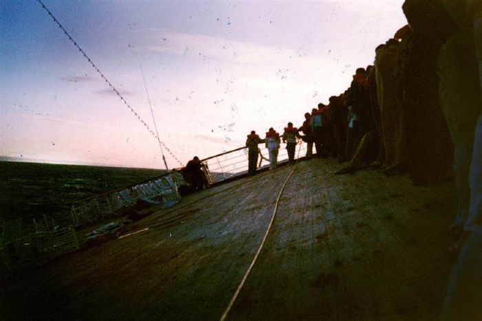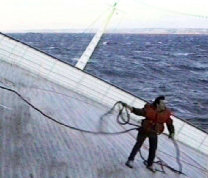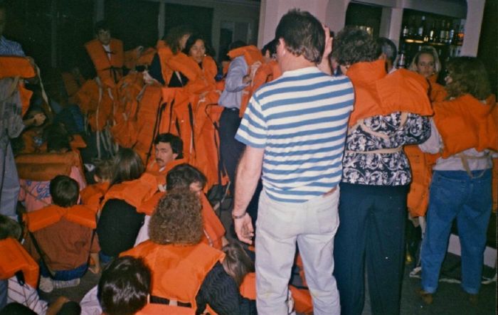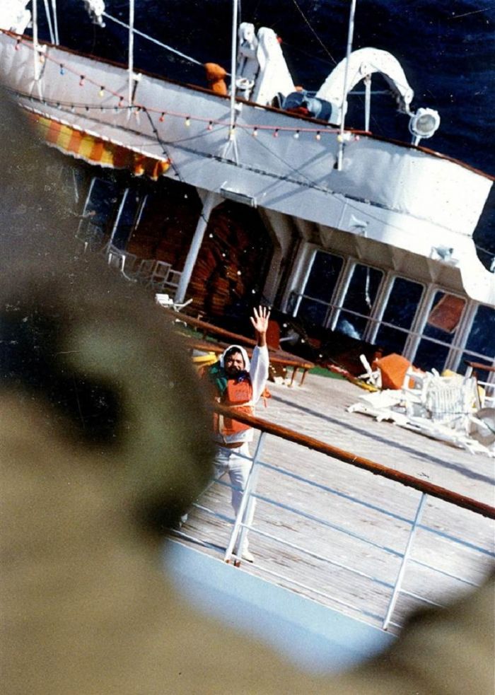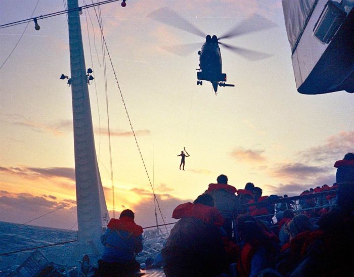 Пассажиры теплохода «Oceanos». Пассажиры теплохода ждут спасения, зацепившись за перила.