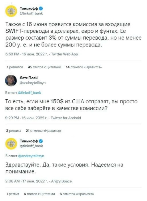 Анекдот про «Тинькофф» и его новые условия 17/06/2022 22:15 И смех, и грех Главная / Статьи +1 Admin 2 448