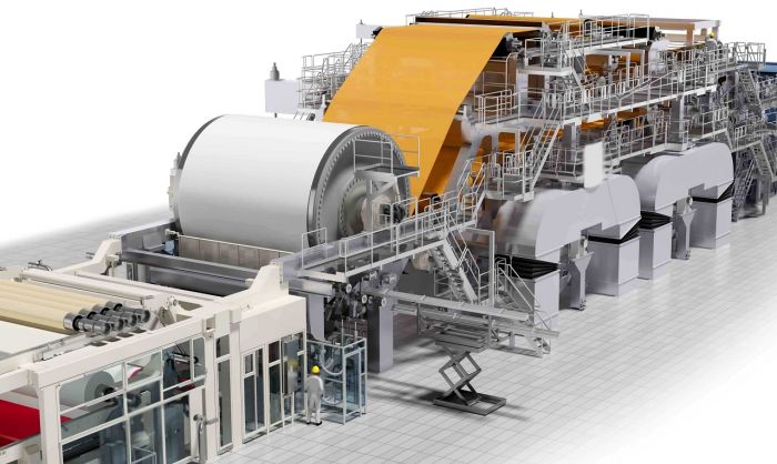 После проклейки масса отправляется в бумагоделательную машину, которая используется на производстве с 1803 года. Ее предназначение заключается в выработке бумаги из массы. В ходе этого процесса появляются волокнистые слои, которые в дальнейшем обезвоживаются, сушатся и наматываются в рулоны.