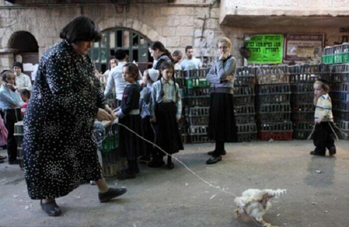 Не менее странно выглядит обряд капарот, который проводят на рассвете в канун Йом-Кипура. Считается, что в этот день раскрывается милосердие Всевышнего. Для обряда берут курицу для женщины или петуха для мужчины. Птицу крутят над головой, произнося установленные фразы, затем отдают бедным. Идея этого обряда предполагает осмысление того, что и человека за его грехи могла бы, не дай о-г, постичь судьба зарезанной птицы.
