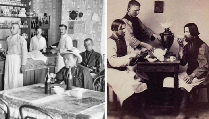 В дореволюционной России кофе было чрезвычайно популярно. Этот напиток был недорогим и доступным практически всем слоям населения. Известно, что первые кофейни начали появляться в Санкт-Петербурге. Одной из самых популярных в те времена было «Кафе Вольфа и Беранже». Это любимое место Чернышевского, Лермонтова, Пушкина. К таким напиткам стали подавать сладкое. Начали открываться кондитерские, где любила собираться творческая интеллигенция. Чайные располагались при дорогах, вокзалах. Там обязательно был огромный самовар, где можно было отведать горячий чай, булочки и простую русскую пищу по очень доступным ценам. В трактирах подавали простую пищу и вино. Поэтому там собирались низшие слои общества и не всегда приличная публика. В кухмистерских столовых могли себе позволить откушать население с небольшим достатком. Например, за обед из 4 блюд нужно было заплатить около 40 копеек. Кухни здесь были разные, но блюда всегда свежие и доступные.
