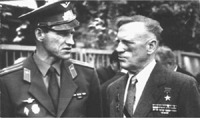 Мы в тот день возвращались домой, и вдруг рядом – «клюв». Удар! В кабину хлынул керосин. Понял, если не выключу двигатель, – сгорю. Выключил. Отвесно падаю с девяти тысяч. Через четыре километра вывел машину из пике, катапультировался. Подо мной – горы, снега почти нет. Мороз. Я мокрый, весь в керосине, а одет в брючки, рубашечку и китайский френч. Пока спускался, одеревенел. Удар о скалы был страшным, – позвоночник в трех местах треснул. (Учительская газета, №32 от 16 сентября 2005. "Атакует Щу Кин")