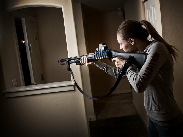 2. Это случилось в 2012 году. Двое мужчин ворвались в наш дом, выломав ломом дверь. Когда они начали ее ломать, я сказал жене взять детей и закрыться в комнате на втором этаже за двумя дверями и вызвать полицию. Сам взял ружье и стал их ждать в гостиной. Я кричал им, что вооружен, и сейчас приедут копы, но это их не остановило. Первым ворвался в дом двухметровый здоровяк с ломом. Я дважды выстрелил ему в грудь. Он постоял секунд 10 и упал. Второй какое-то время был в оцепенении, но потом двинул на меня. Я выстрелил и попал в живот. Он выронил нож и сразу упал. Через минуту приехали копы. Потом я узнал, что здоровяк разыскивался за убийство своей девушки. Совершенно не жалею, что так поступил. Они явно имели намерение нанести вред мне и моей семье. Я их предупреждал, что вооружен, и у них было время уйти до приезда копов, сами не захотели.