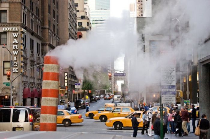 Многие любители кино замечали, что в голливудских картинах, где действие происходит в Нью-Йорке, в пустынных ночных переулках присутствует пар. Обычно это списывают на спецэффекты, применяемые кинематографистами для создания особой атмосферы. Но это не так и, чтобы убедиться в несостоятельности этой версии, достаточно посетить «Большое Яблоко». Пар на самом деле присутствует и его немало. Но откуда он берется?