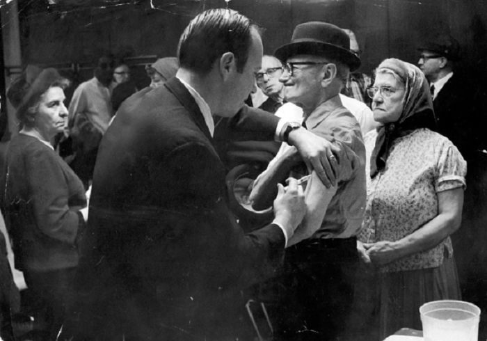 Прививки от гриппа пенсионерам в одной из нью-йоркских клиник, фото 1968 года
