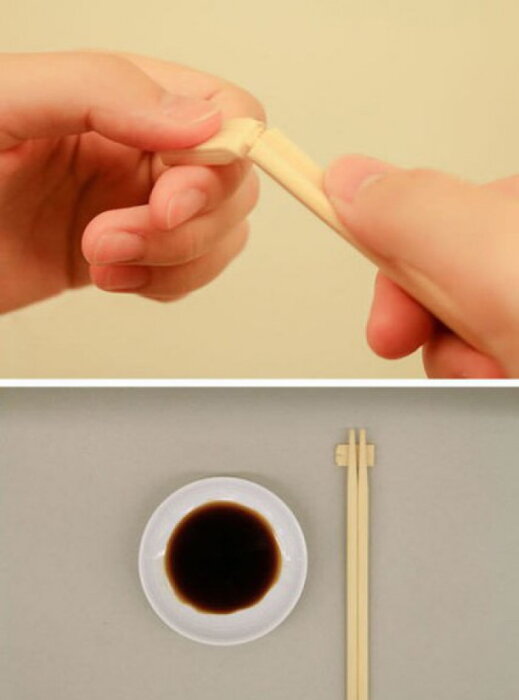 В интернете куча версий, зачем у китайских палочек вот такая штучка на конце. Например пишут, что эта часть на китайских (или японских?) палочках нужна для того, чтобы ее отламывать и потом на нее класть сами палочки.