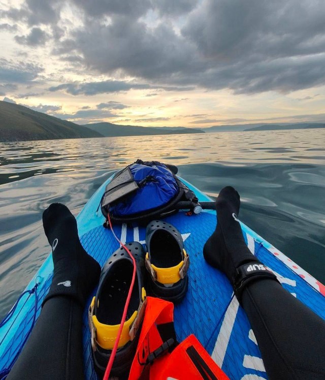 Обычно Антон Гаер водит туристов в походы, но недавно парень решил сходить в поход в одиночку. Причём маршрут выбрал необычный — на сапе, по воде, через Байкал, из Култука до Нижнеангарска. На доску вместе с собой Антон взял палатку, спальный мешок, аптечку, горелку, еду и другие принадлежности. В начале пути всё было хорошо — приятная погода и гладкий Байкал, — однако затем поднялся ветер, начались грозы и волны. Поэтому некоторое время пришлось пережидать на суше.