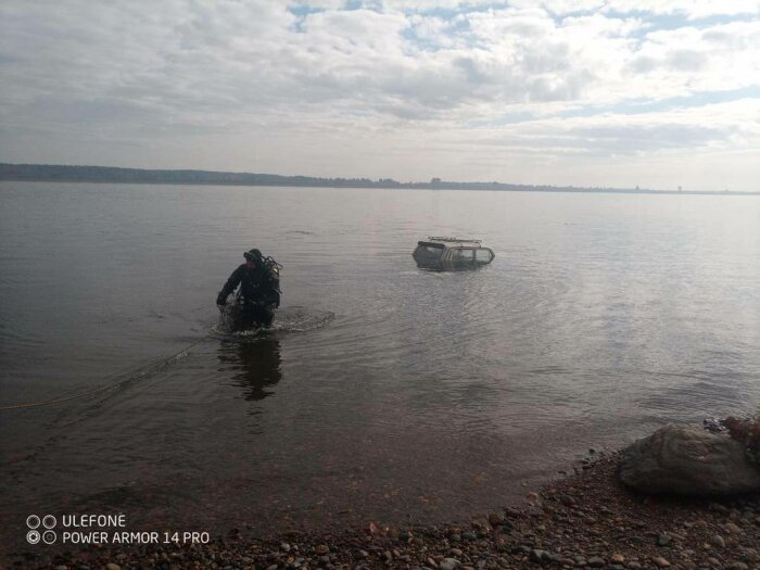 Тогда беглец дает по газам и красиво улетает с береговой паромной рампы в реку, очевидцам полёт понравился. После чего выбрался из тонущей машины и уплыл куда-то вдаль.