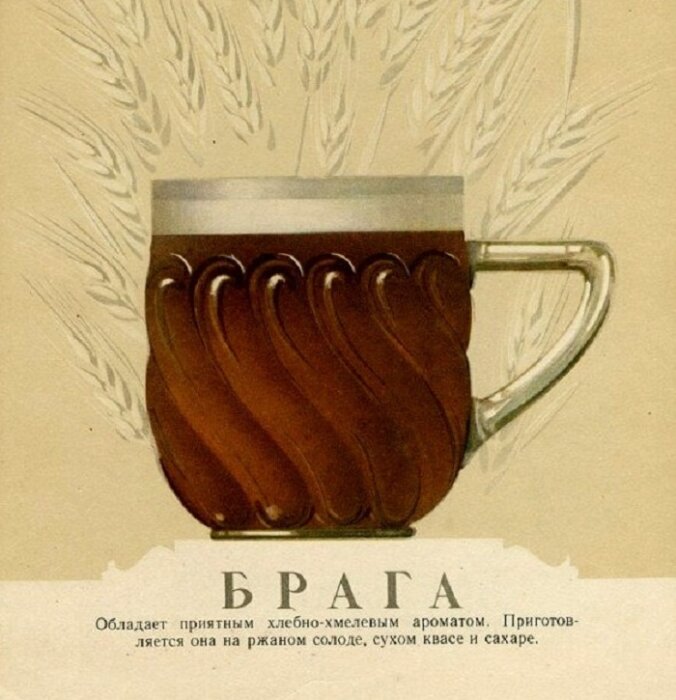Но были в Советском Союзе и такие напитки, которые не встречались больше нигде. Главным из них по праву можно назвать брагу. В официальных документах она описывалась как «старинный национальный русский слабоалкогольный напиток, напоминающий по вкусу дрожжевое пиво с ярко выраженным хлебным и хмелевым ароматом». При этом по рецептуре брага скорее походила на квас и фактически отличалась от него только добавлением хмеля в количестве одного грамма на литр. Уровень алкоголя в ней не превышал 1,5%.