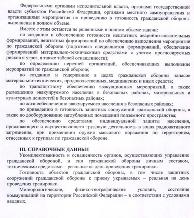 По данным «Базы», подобные учения — для всех регионов и в один день — проводятся впервые в истории страны. По легенде, тренировка пройдёт в условиях военного положения и разрушения 70% жилья.
