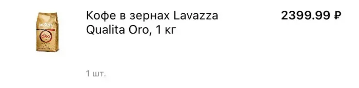 В качестве контрольного образца взяли Lavazza Oro в сетевом супермаркете. За килограммовую пачку заплатили 2399 рублей — в три раза больше, чем на маркетплейсе.