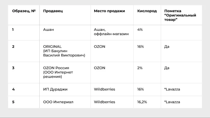 На пачках написано, что внутри — 100% арабика. У нас есть лаборатория, в которой мы контролируем качество кофе. Мы решили воспользоваться нашим оборудованием, чтобы оценить кофе, купленный в маркетплейсах.