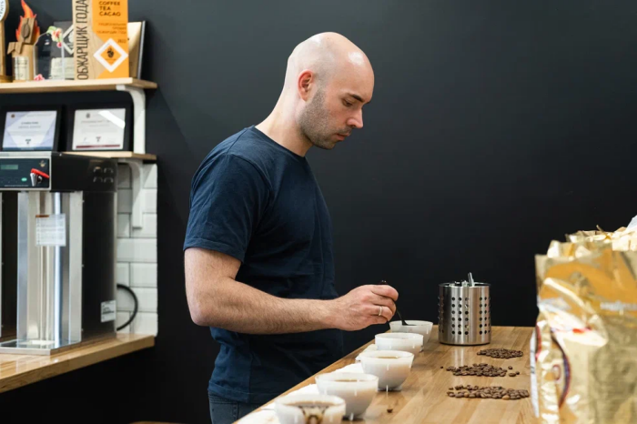 Весь купленный кофе попробовали Q-грейдеры. Это сертифицированные специалисты, которые пробуют кофе и выставляют ему оценку по 100-балльной шкале. Для этого проводят каппинги — зерна намалывают, заваривают в чашке, а потом пробуют и оценивают ароматику, вкус и послевкусие. Q-грейдеры могут не только описать кофе, но и заметить дефекты — например, если зерна слишком долго хранились без азота или в 100% арабику подмешали более дешевую робусту.