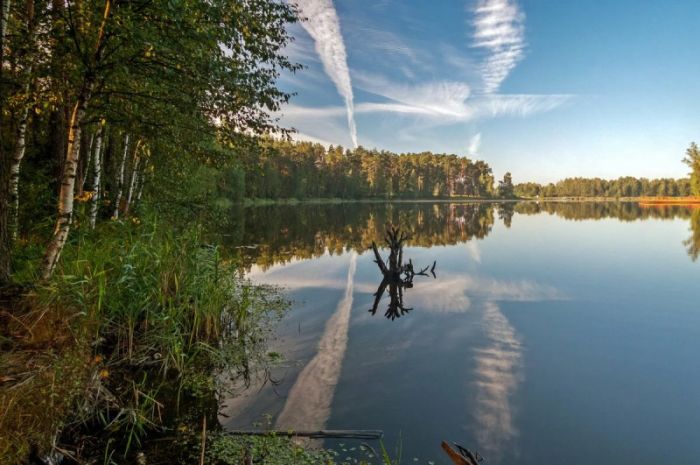 Природа на острове и вокруг водоема очень живописная: много деревьев, в том числе сосен и елей. В озере обитают различные речные рыбы: окунь, щука, плотва, карась, карп и лещ. Ловить рыбу здесь можно, но необходимо заплатить за разрешение на рыбалку. Живут около озера бобры, которые валят деревья, подгрызая их у основания. [