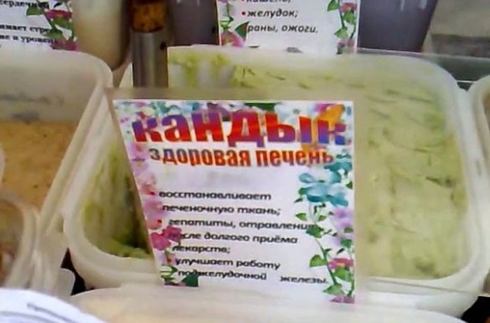 Мёд с кандыка — образцы «из Киргизии» и «с Алтая», рекордную цену 1400 руб. за килограмм продавцы обосновали тем, что растение цветет один раз в 10 лет (на самом деле это не так).