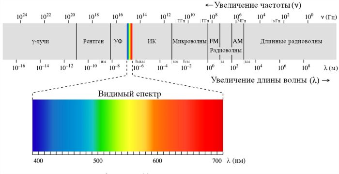 Помимо видимой части, электромагнитное излучение также бывает и невидимым для наших глаз. Сюда относятся микроволны, инфракрасное, ультрафиолетовое излучение, рентгеновские лучи и др. Световой луч состоит из фотонов – элементарных мельчайших частиц. Фотоны считаются одновременно и волнами, и частицами. У них нулевая масса и электрический заряд, нет определенного размера и структуры. При этом фотоны переносят электромагнитное взаимодействие и двигаются со скоростью света.
