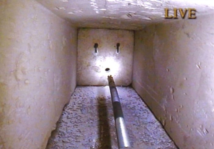 Ранее специалисты сделали небольшую дыру в первой южной двери и провели сквозь нее камеру, прикрепленную к зонду. Таким образом и нашли вторую дверь. Предполагается, что за ней может быть еще одна.