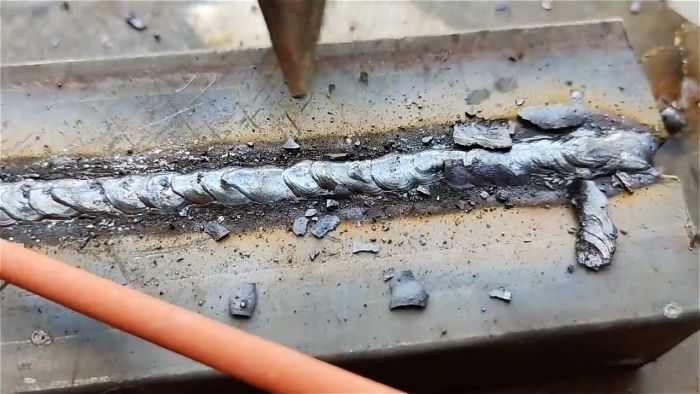 Сбиваем со шва шлак и убеждаемся, что шов получился без прожогов и непроваров по всей длине.