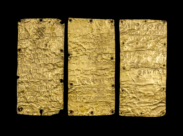 Эта необычная книга, состоящая из 6 переплетённых золотых листов общим весом 100 грамм. Текст на табличках написан на этрусском языке и связан с орфизмом. Реликвия была обнаружена совершенно случайно во время рытья канала на реке Струма в Болгарии.
