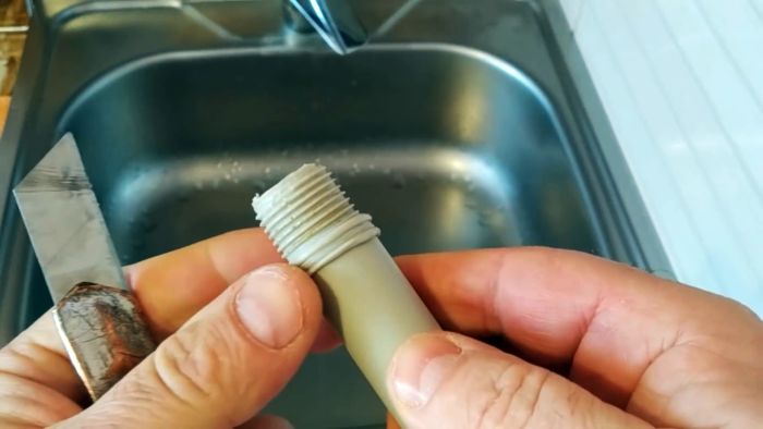 Внутренняя резьба на трубе 25 мм выполняется аналогично, но фитингом с наружной резьбой. После изготовления нужно подрезать наплывы ножом.
