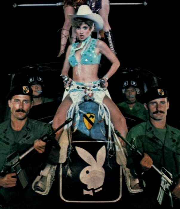 На совершенно новый уровень вывел эротику в армии основатель журнала Playboy Хью Хефнер. Он сделал свое издание главным для американских солдат. Это был период войны во Вьетнаме, и регулярными поставками свежих номеров дело не ограничилось. Playboy организовывал концерты и шоу, нередко в полевых условиях, солдаты писали моделям письма. Часто на страницах издания или на фирменных плакатах появлялись сюжеты в стиле милитари.