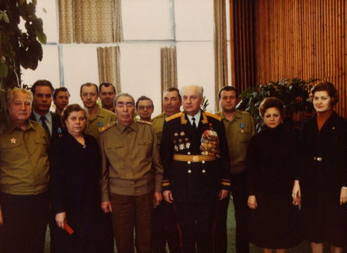 Слева на право: Генерал А.Я.Рябенко, Г.В.Федотов, А.В,Садофьев, В.Т.Медведев.Справа за спиной Л.И.Брежнева его врач Косырев М.Т