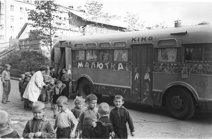 Но если появление передвижного рентген-кабинета воспринимали сдержанно, то другой автобус, с надписью «Детский кинотеатр», всегда ждали с нетерпением. Чаще всего там показывали детские фильмы и мультфильмы, но бывали и взрослые сеансы. Для отдаленных деревень приезд автобуса с кино был единственным способом прикоснуться к искусству.