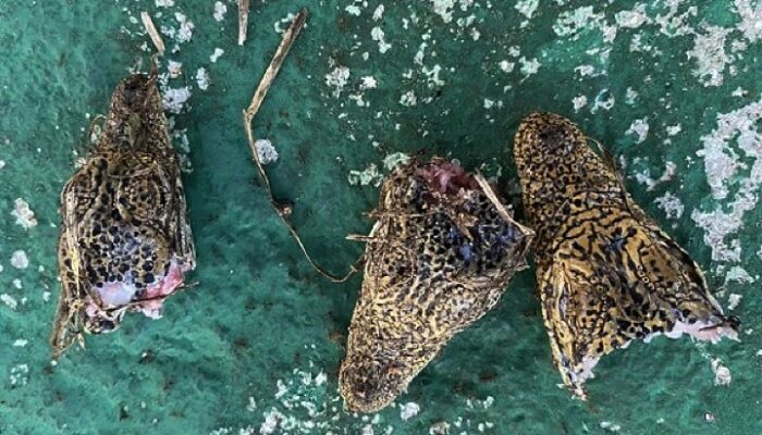 А пока вокруг фермы по кустам находят вот такие головы, это всё, что остается от крокодильчиков.