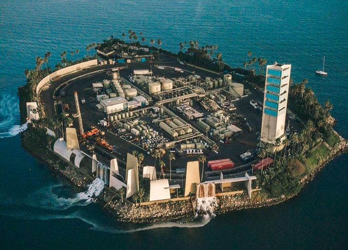 Когда избиратели Лонг-Бич дали добро на амбициозный план использования нефтяных ресурсов, расположенных у берегов, часть этого соглашения заключалась в том, что острова должны быть спроектированы как тропические и что они должны скрывать процесс добычи нефти.