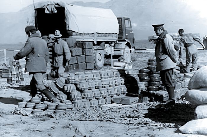 Кучи мин, обезвреженных инженерно-саперным батальоном.
